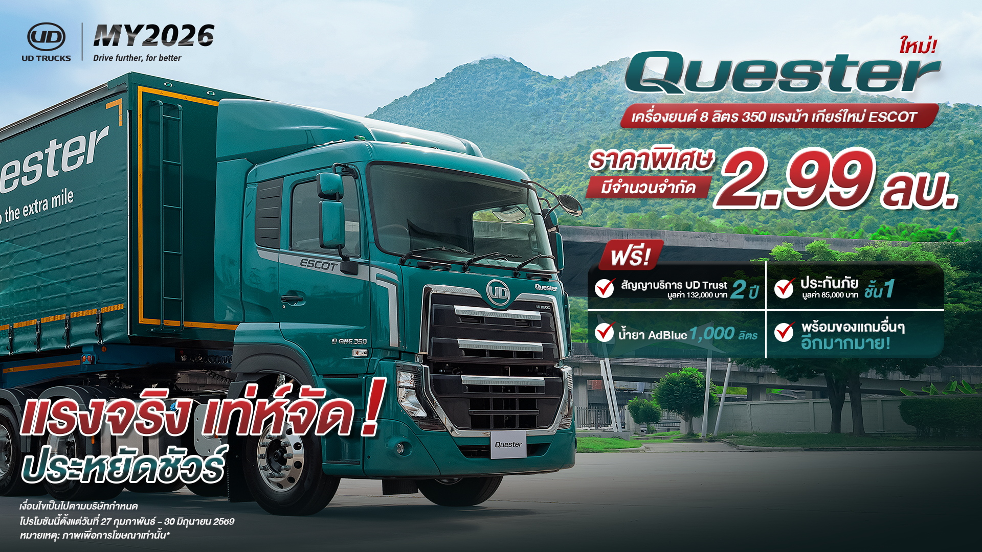 มอบโปรโมชั่นพิเศษสุด สำหรับรถหัวลาก UD Quester เกียร์กึ่งอัตโนมัติ เอสคอท 390HP